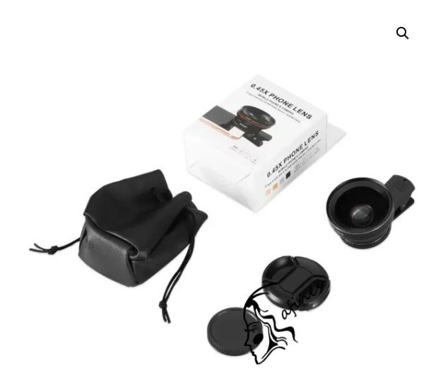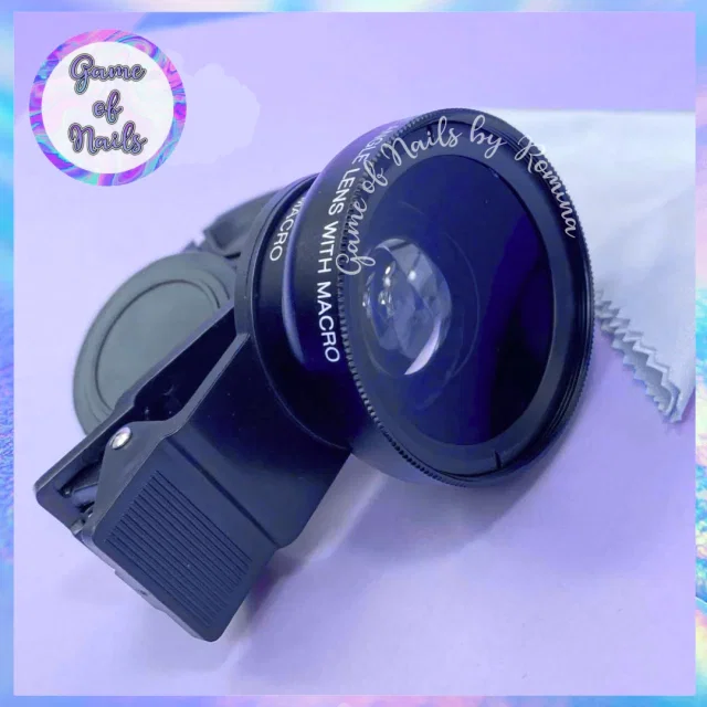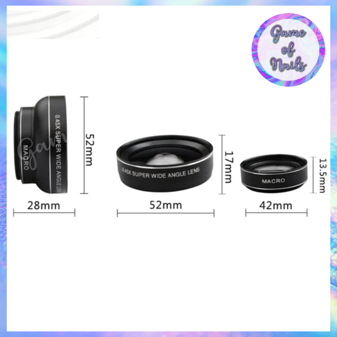 Lente macro + gran angular, incluye paño para limpieza, bolsa protectora, lente con broche y tapas. Colores surtidos.