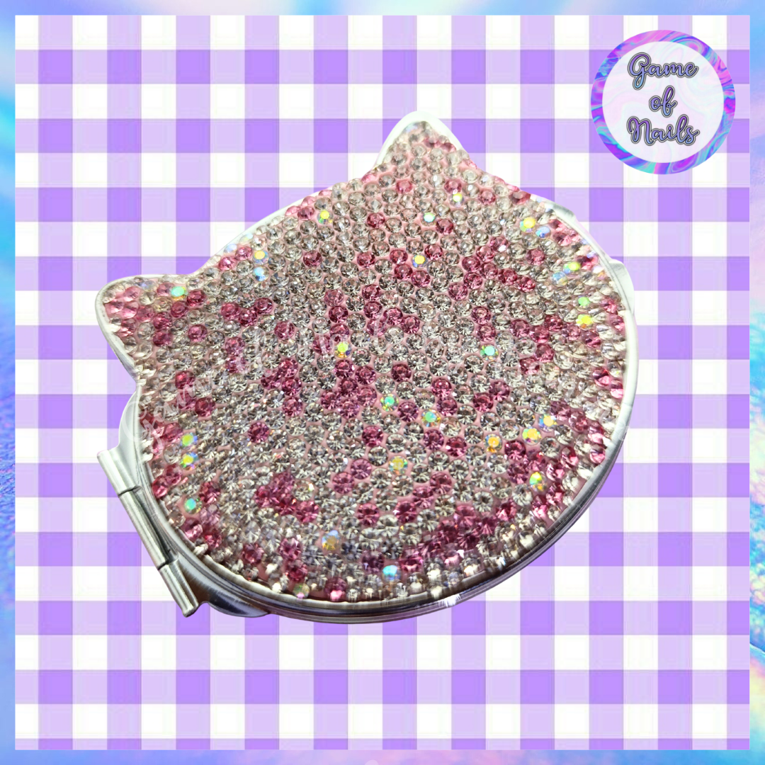Espejo de cartera con cristales gatito